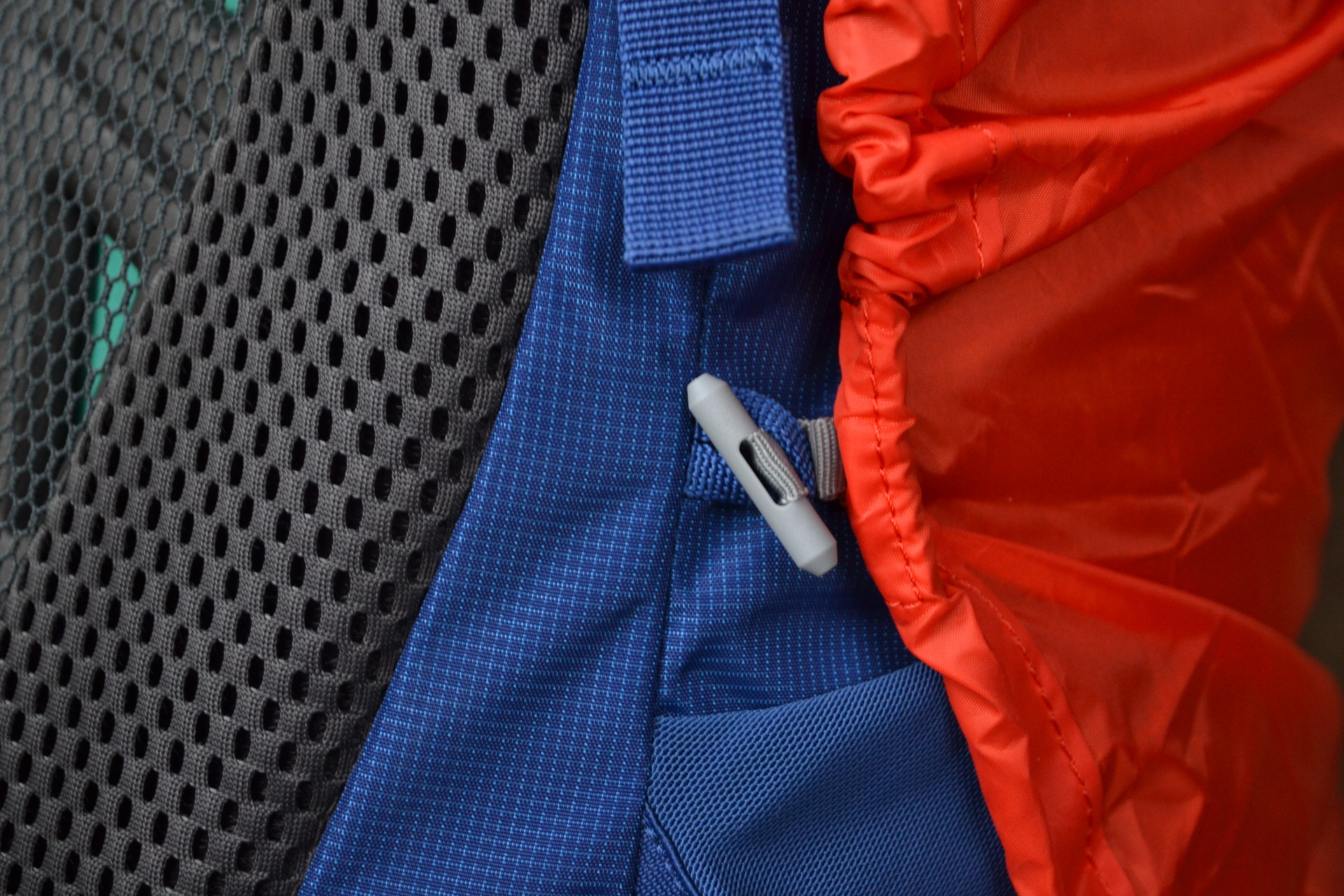 Popruh pod vrchlíkem je vhodný pro uchycení lana. Po obvodu přední síťované kapsy se šikovně skrývá na každé straně pět ok pro uchycení dalšího materiálu, která na první pohled nejdou vidět.