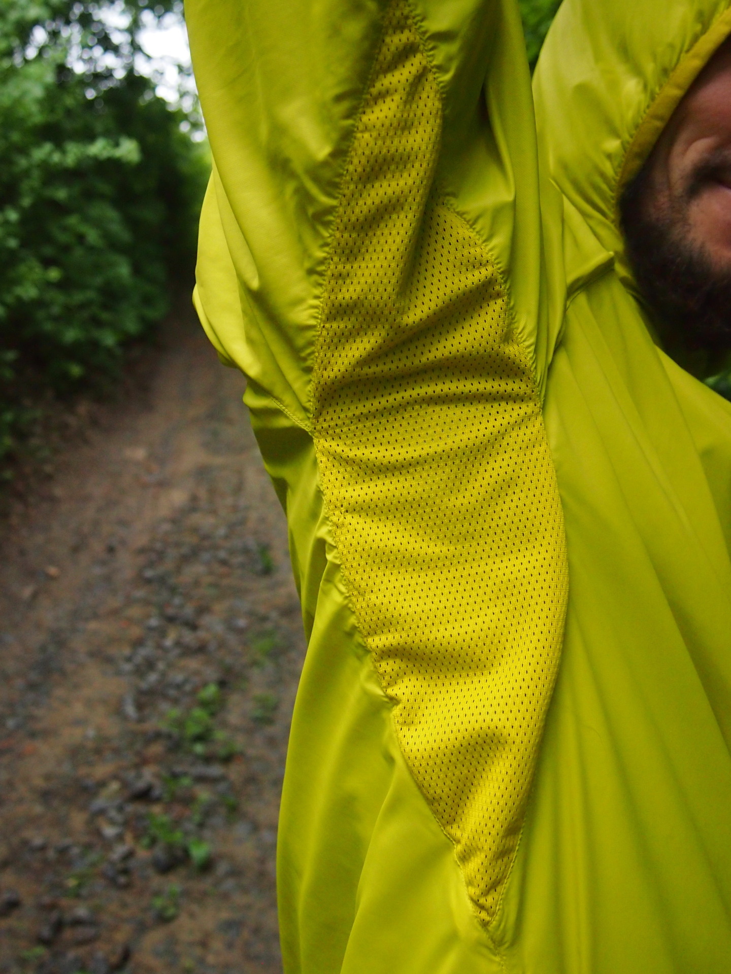 V kombinaci s vnější nylonovou tkaninou je bunda pohodlná při nošení. Přestože je zpevněná ripstop strukturou, je natolik tenká a ohebná, že neomezuje v pohybu. Ačkoli jsem bundu nepodrobil laboratorním testům, rozhodně jsem při pohybu neměl pocit, že bych byl uzavřený v neprodyšném obalu. Právě naopak. Ještě lepší prodyšnosti při intenzivnějším pohybu znatelně přispívají všité síťové panely v podpaží. Jejich velikost je velkorysá, ale díky stejné barvě jako zbytek bundy, jsou nenápadné.