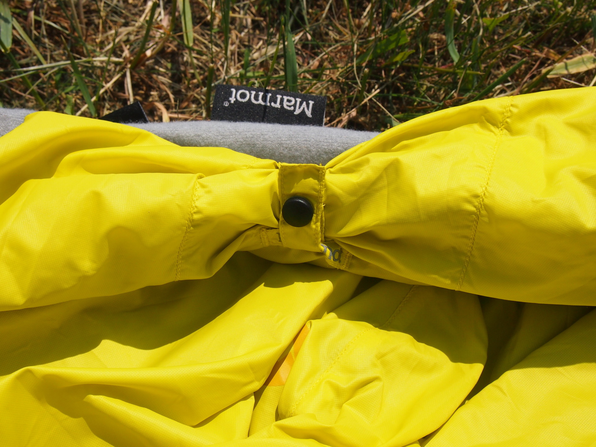 V celkově minimalistickém a funkčním pojetí jsou provedeny i další detaily. Rukávy jsou ukončeny tenkou pruženkou. O stahování v pase se stará tenká guma s plastovými brzdičkami pro nastavení obvodu. Proti nepřízni počasí chrání jednoduchá a těsně přiléhající kapuce. V případě, že není potřeba, je možné ji srolovat na vnější stranu límce.