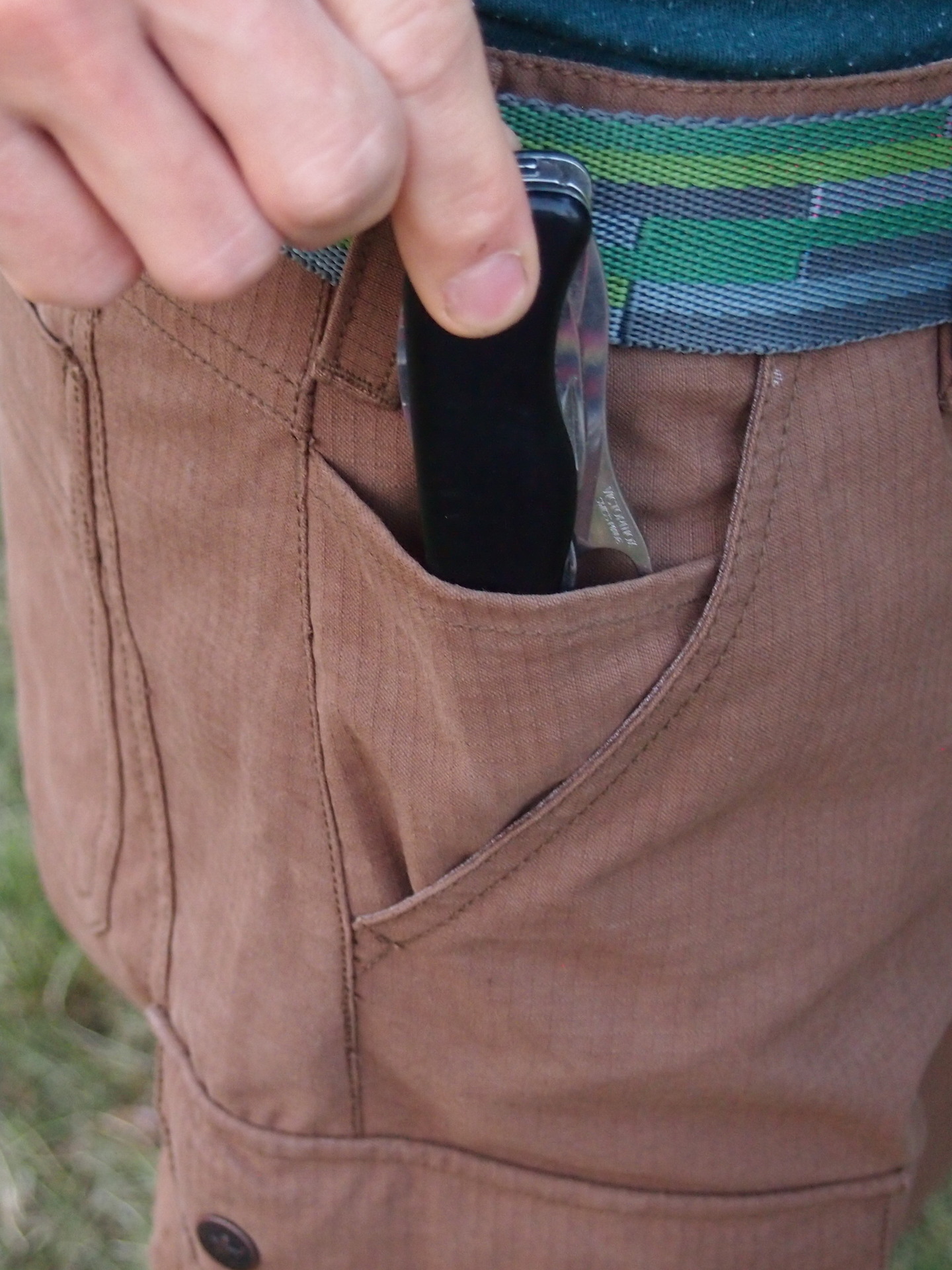 Pánské kalhoty Warmpeace Galt. Do boční kapsy se pohodlně vejde nůž.