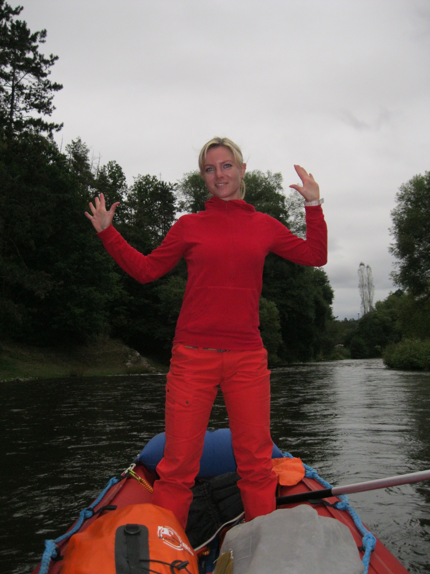 Samozřejmě na nich lze najít hned několik výšivek charakteristických právě pro firmu Warmpeace. V těchto kalhotách jsem absolvovala sjíždění řeky. Musím uznat, že díky jejich nepromokavosti jsem vodu nikdy nepocítila na vlastní kůži. Vždy, když jsme sjížděli splav, tak se voda v krásných kuličkách skutálela a na látce neulpělo vůbec nic. Při samotném sezení byly vcelku pohodlné. Ani vítr se ke mně nedostal.