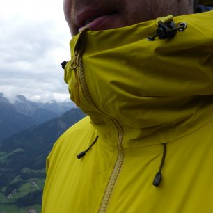 Jelikož se jedná primárně o bundu pro sjezdové disciplíny, je důležité, aby se pod kapuci vešla helma, což s její velikostí opravdu není problém. V jedné diskuzi jsem četl, že přispěvatel musel bundu vrátit, protože je kapuce tak velká, že by se do ní vešly dvě hlavy. Evidentně se jasně neinformoval, k jakým aktivitám má bunda sloužit. Nicméně se ho nechci úplně dotknout (naštěstí to bylo na zahraničním serveru, takže snad ne), ale možná zcela nepochopili, k čemu jsou pruženky a samosvorky po stranách a na zátylku. Kapuce se dá totiž tak dobře regulovat, že i bez helmy se hlavě skvěle přizpůsobí. A nebo mám abnormálně velkou hlavu jak pátrací balón…