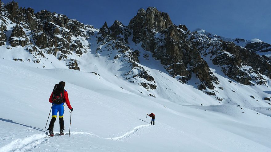 Stoupáme k dalšímu sjezdu během lednového skialpového výjezdu do Gruzie
