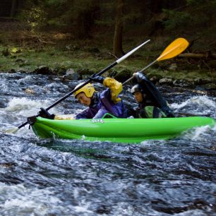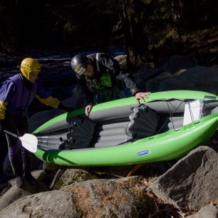 Jízdní vlastnosti mě uspokojily. Kajak ochotně poslouchá řízení i v kamenitém korytě a tekoucí vodě, dobře vede stopu a přitom je stabilní. Skvěle reaguje na náklony, a přestože loď není určena na divočejší vodu, je i v proudech překvapivě obratná (testovací verze nebyla vybavena směrovou ploutví).