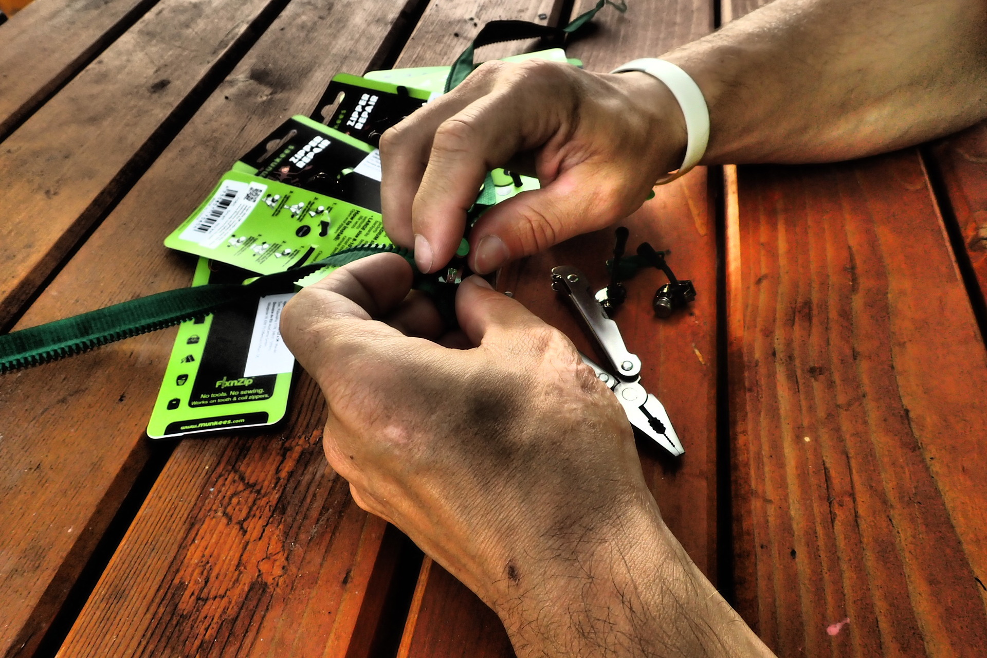Jako jediné nářadí, které jsem použil, byl malý multifunkční nůž s kleštěmi, kterými jsme odcvakli torzo původního jezdce tak, aby tam šel nasadit nový FixnZip®. V domácím prostředí jsou však pro tento úkon ideální štípací kleště.
