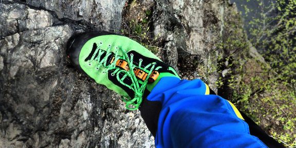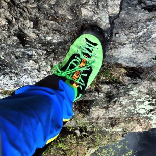 Pevná bota zpříjemňuje stání na skalních stupech.