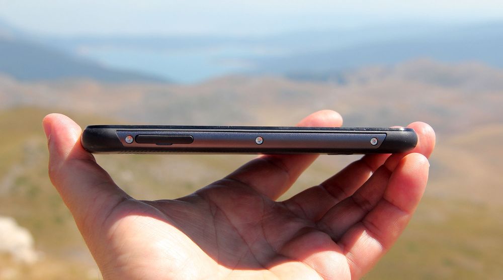 Výstupy na telefonu jsou minimalizovány, takže kromě 3,5 mm jacku, microUSB datového a napájecího vstupu je po levé straně pouze krytka pro nanoSIM a paměťovou kartu. Tato krytka trochu vystupuje nad obrys telefonu. Z pravé strany jsou potom dvě tlačítka – propojené „nahoru a dolů“, a k tomu aktivační „power“tlačítko.