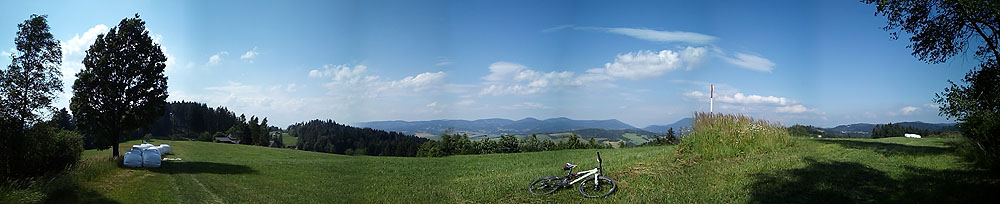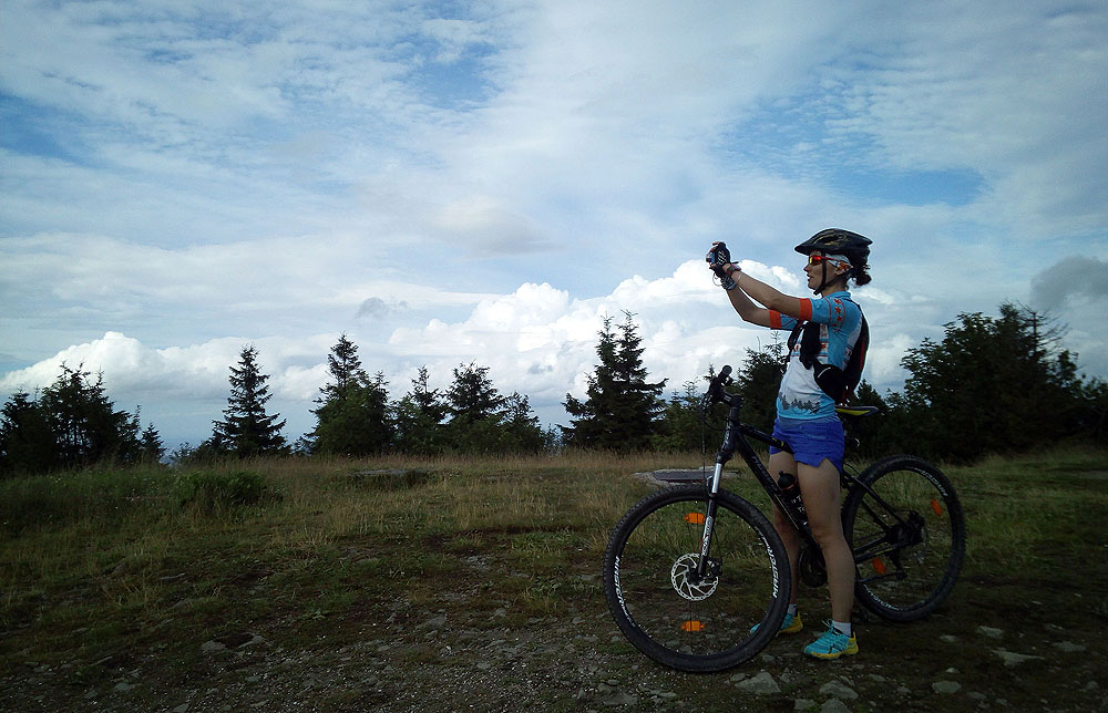 Foto z jízdy na kole – lokalita u Javoru ve Vsackých Beskydech, foto má lehký nádech do modra