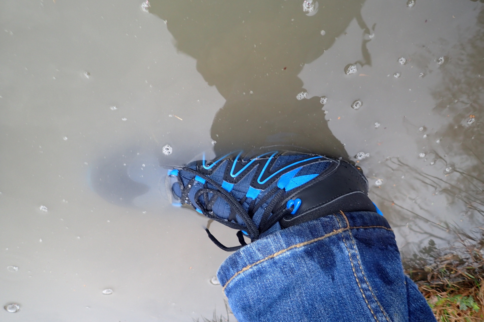 Bota Salomon Cruzano GTX zvládla i průchod a pobyt v hlubší kaluži.