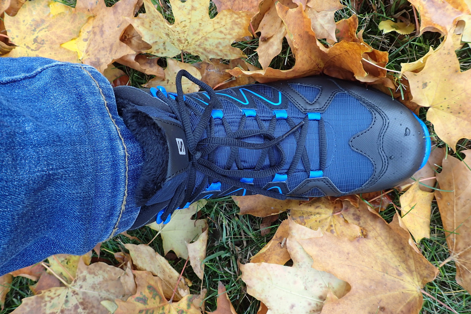 Drobné zanášení vzorku Salomon Cruzano GTX při podzimních procházkách.