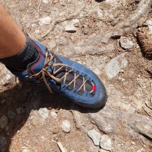 Tak je pohodlná a to díky tlumení značkovou pěnou EVA. Dále i jistá, protože o tření se stará značková podrážka Vibram Megagrip. Vzorek si poradí i s náročným lesním terénem. Podrážka s lezeckou špičkou rozdělena na několik menších plošek obstála i při lezení na via ferratách a jako nástupovka do skal a na horské cesty ve Vysokých Tatrách. Líbilo se mi i vybrání a použití měkkého materiálu v místě achilovky tak, že i při dlouhých krocích nebo při zvedání nohy na výše položené stupy nedocházelo k omezování pohybu ani k tlačení do těchto míst.