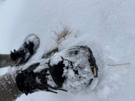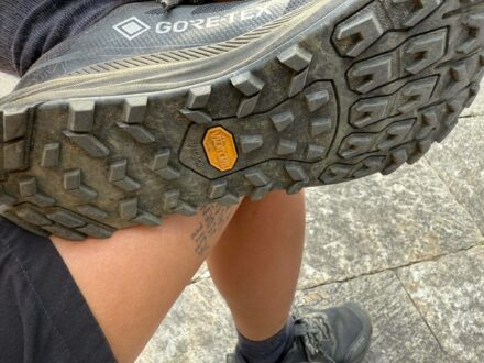 Podešev je osazena 4mm výstupky, které ve spojení s použitou směsí Vibram Megagrip dodávají pocit jistoty na různých typech povrchů – od skal po sypké kamínky a sníh. Jediné, co botám úplně nesvědčí, je samozřejmě led, ale ani bahnitý terén, avšak vzhledem k tomu, že jsou spíš univerzálně laděné, považujeme jejich trakci, grip a verzatilitu za nadprůměrnou. To potvrzuje i Mája: „Podrážka – nová vibramka – by prý neměla klouzat. Tak na ledu samozřejmě pomohly až nesmeky, ale jinak bych řekla, že fakt drží a ten grip je pecka.“