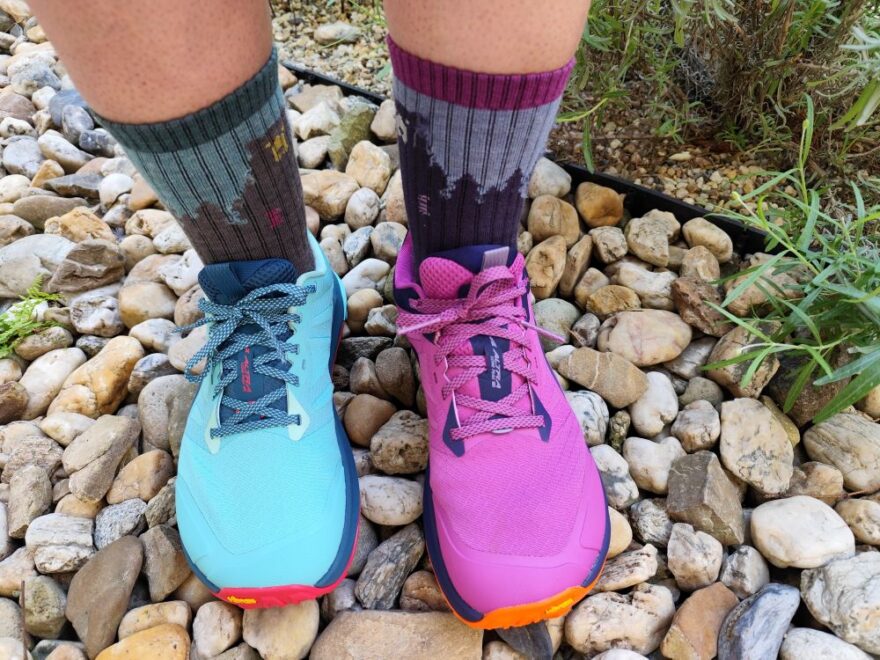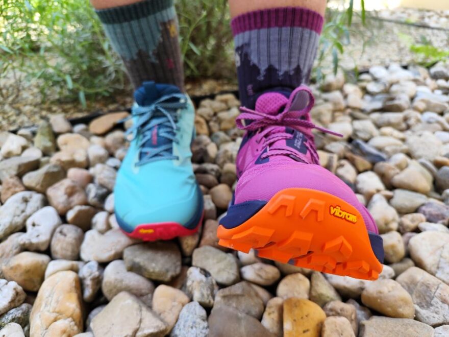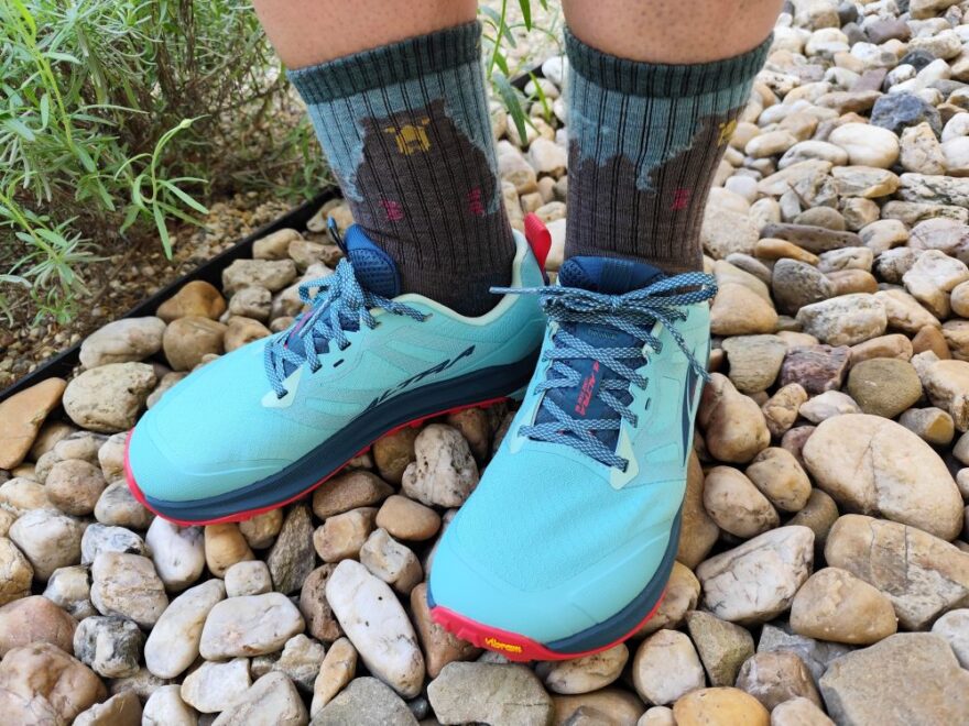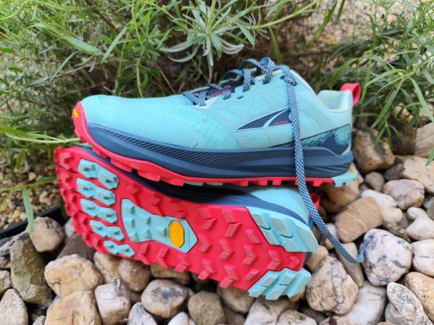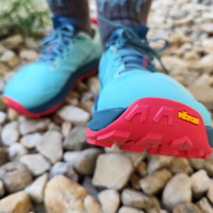 Podešev je osazena 4mm výstupky, které ve spojení s použitou směsí Vibram Megagrip dodávají pocit jistoty na různých typech povrchů – od (mokrých) skal po sypké kamínky a hlínu. Jediné, co botám úplně nesvědčí, jsou mokré kořeny a bahnitý terén, avšak vzhledem k tomu, že jsou spíše univerzálně laděné, považuji jejich trakci, grip a verzatilitu za nadprůměrnou. Zároveň tu Altra opět chytře vyřešila další problém – a tou je trvanlivost a odolnost podrážky. U dřívější směsi docházelo k rychlému obrušování výstupků a snížení trvanlivosti bot, pokud byly používané na tvrdém či ostrém povrchu. U verze 9+ se ukazuje, i takto náročné povrchy botu neobrousí dohladka ani po 500 kilometrech.