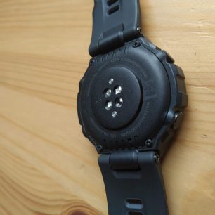 Při rozbalení mě překvapila jedna věc – jejich nízká hmotnost. Hodinky na zápěstí téměř necítíte. A to především díky materiálu. Přestože se na obrázku hodinky zdají kovově, naprostá většina částí je z plastu. Celkově hodinky na omak působí trochu jako dětská hračka. Funkčně ovšem pracují dobře. Co se týče stavby hodinek, ciferník je oproti většině smartwatchů poměrně velký a robustní. Zespodu ciferníku najdeme snímač srdečního tepu ze zápěstí, ten sice lehce vystupuje, ale ne ruce jej není vůbec cítit. Řemínek je tvořen z pevné, na první pohled odolné pryže. Tato guma je poměrně pružná a v kombinaci s nízkou hmotností se dají hodinky na zápěstí upnout velmi pohodlně, ale zároveň jistě. Papírově by hodinky měly být poměrně odolné. Displej je krytý tvrzeným sklem a voděodolnost by měla být efektivní až do hloubky 100 m. Tvrdost skla můžu potvrdit. Vanu máme doma bohužel standardní hloubky… Dále mají hodinky 15 vojenských certifikací1 (MIL-STD-810): zvládnou extrémní teploty a podmínky. 70°C teplo / -40°C mráz / 240 hodin vlhkosti / 96 hodin solného postřiku.