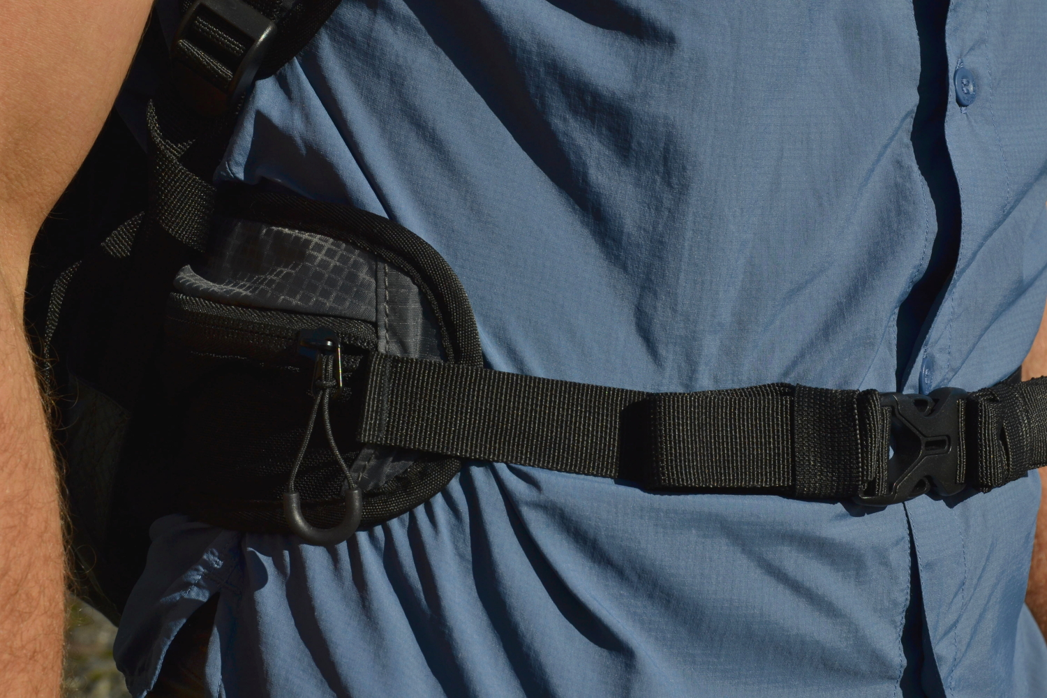 Bederní pás je velmi úsporný – podobně jako u ramenních popruhů ho tvoří perforovaný poddajný materiál se síťovinou, který obepíná boky. Hrudní popruh se dá snadno posunout nahoru i dolů a přezku doplňuje praktická nouzová píšťalka.