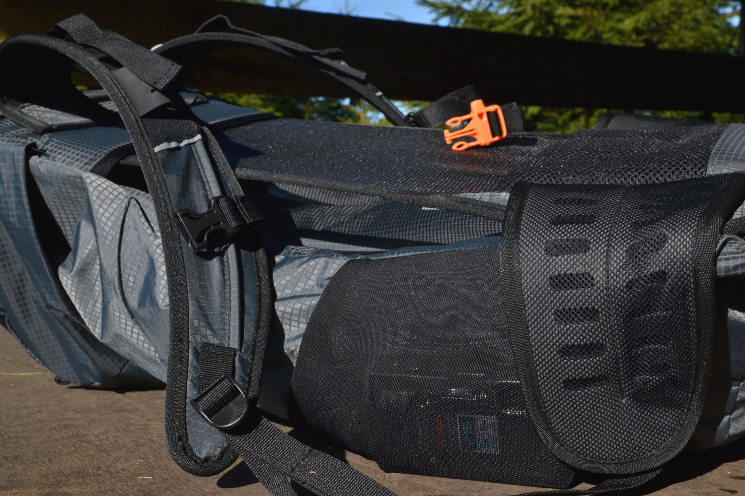 Anatomicky tvarovaný zádový systém Air lite se síťovanou konstrukcí výborně větrá a dobře sedí na zádech. Odlehčené kovové výztuhy udržují mezeru mezi batohem a síťovaným zádovým systémem a zajišťují tak maximální odvětrání. Ačkoli nejsem fanda kovových výztuh, má tohle řešení opravdu maximální funkčnost.