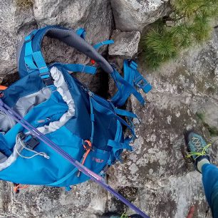 Zůstaly dvě oddělitelné komory. Do spodní se leze pomocí zipu s dvěma jezdci, který je ještě zajištěn popruhem se sponou. Tato komora je oddělitelná pomocí stahování šňůrou se samosvorkou. Tedy žádné zipy a popruhy. Blbuvzdorné. Osobně oddělování komor nevyužívám, protože mám rád koncept kletráku. Rád mrskám věci do otevřeného batohu bez nutnosti přemýšlet, co nahoru a co dolů. Na druhou stranu vstup do spodní komory supluje boční či jiní extra vstup do batohu bez nutnosti jej vybalovat horem.