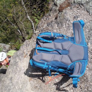 Zádový systém se jeví jako pohodlný. A i on naznal změny oproti svému předchůdci. Okraje ramenních popruhů směrem ke krku jsou měkčené. Síťovina je příjemná i na holé tělo. Bederní pás je měkčí než v předchozí verzi. Dobře kopíruje tělo. Stahování je pomocí širokého popruhu a dotahuje se směrem od těla. Na pravé straně je spíše menší kapsa, která pojme drobné vybavení jako jsou například kapesníky, klíče či opravdu malý mobil. Na pravé straně je poutko alá materiálové poutko na sedáku na odkládání karabin. Bederní pás se dá oddělit.
