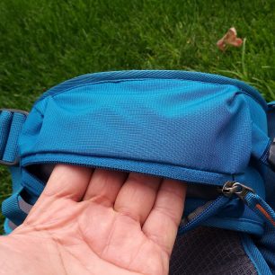 Horní komora má klasické stahování pomocí límce se šňůrou a samosvorku a tvoří tak buď pomyslný prodloužený komín nebo komoru zavře. Přes ní vede ještě zajišťovací popruh, pod který je možno vložit třeba lano nebo extra oblečení. Na levé straně batohu je i boční zipový vstup, který měří cca 20 cm a je spíše kratší než delší. Dostat z batohu větší termosku je trochu boj.