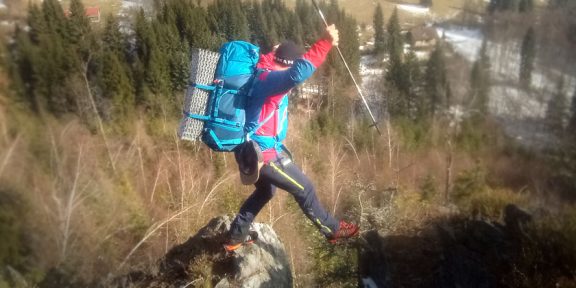 Spony je možno dobře rozepínat i v rukavicích. Popruhů na batohu nejdete celou baterii a je možno jej stahovat nebo na něj zavěšovat další vybavení. Pod hlavní popruhy, které vedou i přes čelní panel dáte karimatku, sněžnice či hole. Pod víkem je fixační popruh na lano. Pro fixaci lyží je na spodní komoře ještě extra popruh na založení lyží a vejdou se do nich i opravdu široké lopaty. Cepíny se fixují velmi jednoduše a hroty jsou částečně chráněny extra materiálem. Topůrka se zajišťují pomocí pružné tkanice a samosvorky.