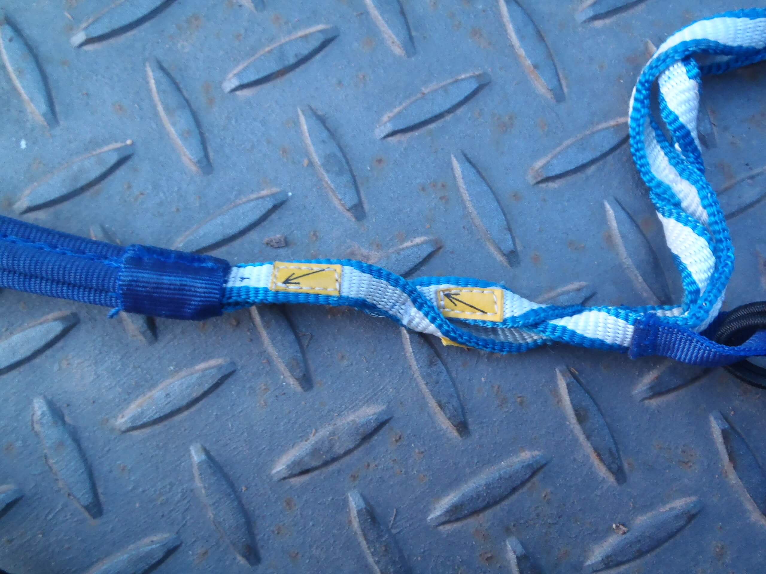 Správné provlečení lana popruhem je takto vyznačeno šipkami.