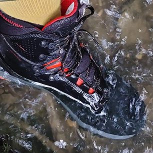 Komentář testera: Na první pohled zaujme. Nejprve černou barvou a při zkoumavějším pohledu i spoustou ventilačních otvorů. Měl jsem jisto. Do těchto bot zateče raz dva. Během testování a namáčení i více jak 48 hodin se to nepodařilo. A bahno? To samo odpadlo. Viz obrázky ve fotogalerii.