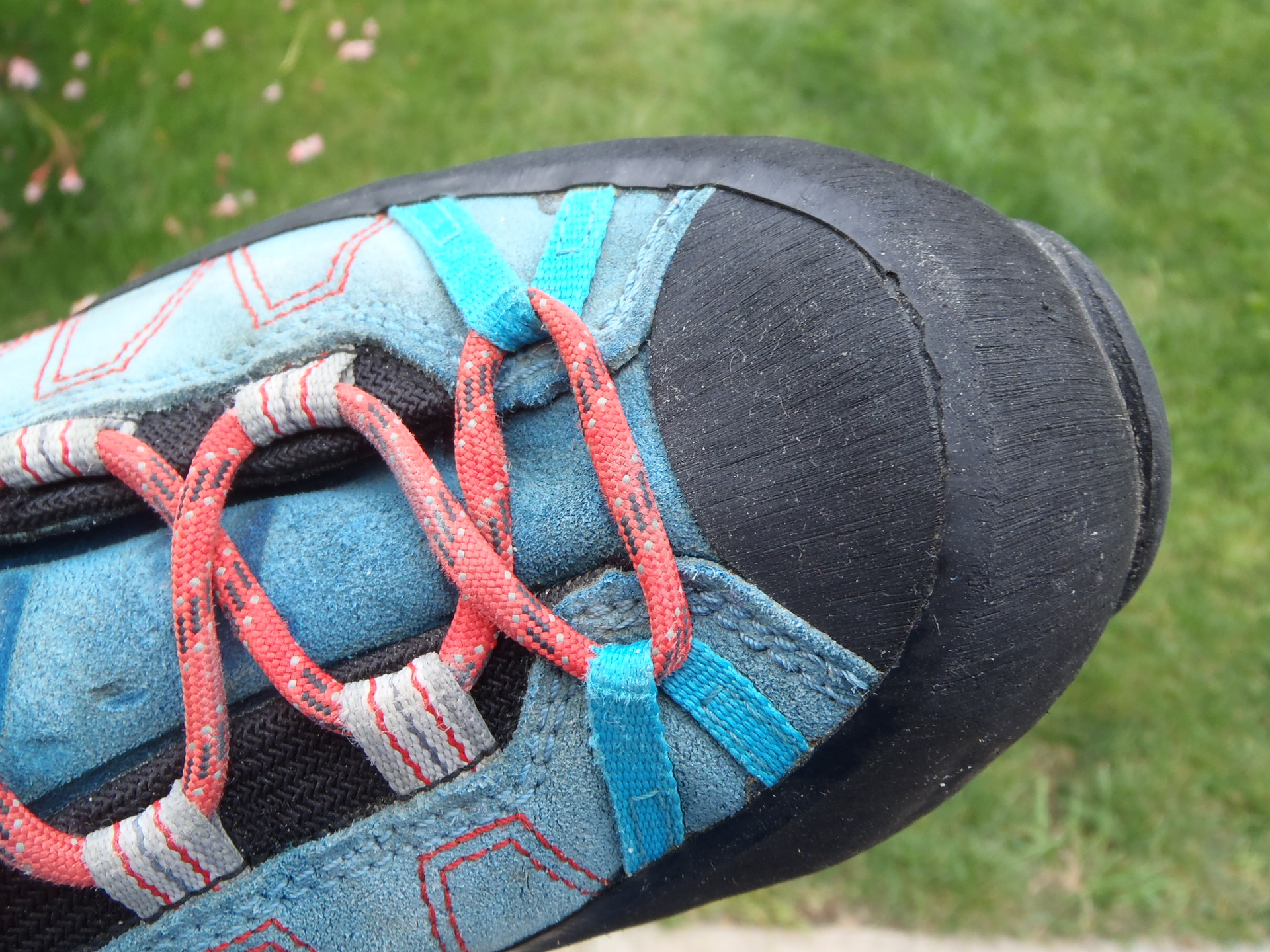 Textilní poutka na šněrování, která mohou působit poněkud nedůvěryhodně, nejeví žádné známky opotřebení. Bota se nikde nepárá a nic se na ni neodlepuje. Botu chrání vysoká a silná obsázka. Značkový Vibram drží na skále. A bota umožňuje použití i poloautomatických maček. Tato obuv bude podrobena intenzivnímu a dlouhodobému testu.