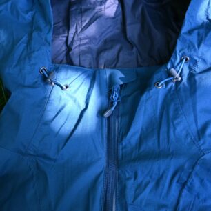 Velká a pevná pod kterou se vejde přilba se reguluje ve dvou směrech – v lemu a horizontálně v úrovni uší. Takže se dá ladit tak, aby vám nezabraňovala ve vidění a v orientaci. Kapuce je navíc rolovatelná k límci, když nechcete, aby vám vlála ve větru nebo se dostávala pod batoh, když si ho nasazujete.