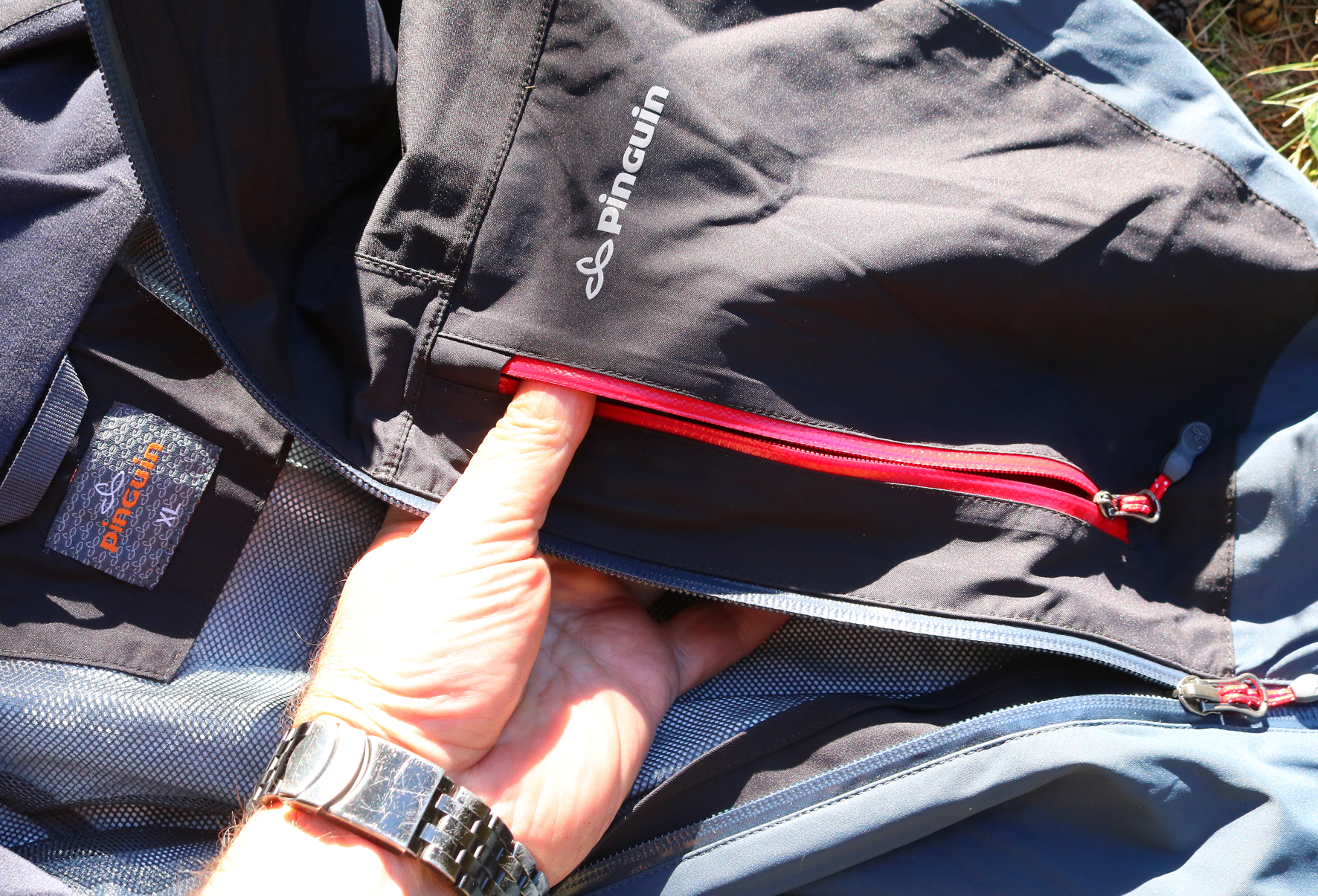 Na první pohled u bundy Pinguin Signal zaujmou bytelně podlepené voděodolné zipy. Jako jsou jindy zipy slabinou nepromokavosti, tudy se voda dovnitř opravdu nedostane. A nemá moc šancí ani jinudy, protože je vyrobena z hydrofilní A.C.D. membrane 2L, garantující voděodolnost 20000 mm.