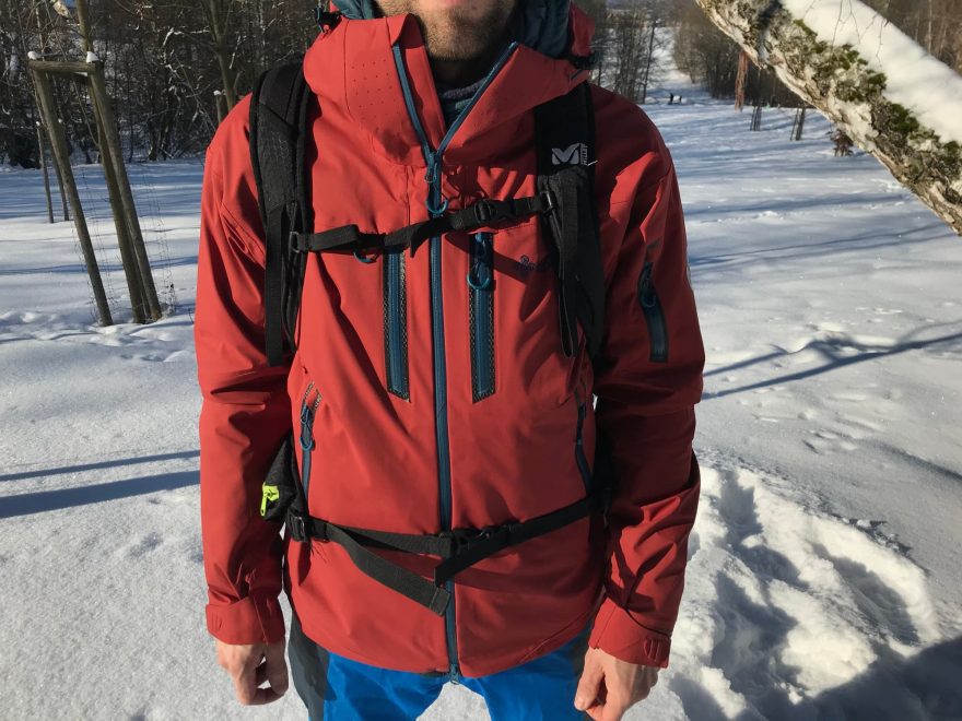 Skialp – prodyšnost 10 000 mm za 24 h na m2 není na dnešní poměry nic moc, délka ventilačních zipů je pouze 25 cm. Z tohoto důvodu jsem jí při výstupech odkládal často do batohu a vyndával až těsně pod hřebenem.