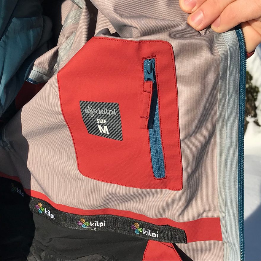 Střih bych označil jako regular fit a není problém obléknout pod bundu další vrstvu – slabou péřovku. Na moji výšku 178 cm a 74 kg jsem dle tabulek vzal vel. M, ale z důvodu vrstvení v zimních měsících bych doporučil větší velikost L. Během lyžování bunda „sedí na těle“ a nijak se nekrabatí, nepřekáží a můžete se soustředit pouze na jízdu z kopce. V případě táhnutí na záda se dá bunda jednoduše stáhnout pomocí elastických gumiček a svorek na obou stranách. Jestli hodláte používat sedák, tak se Vám bude hodit oboustranný hlavní zip, případně ho můžete využít pro vstup do kapes spodní vrstvy.