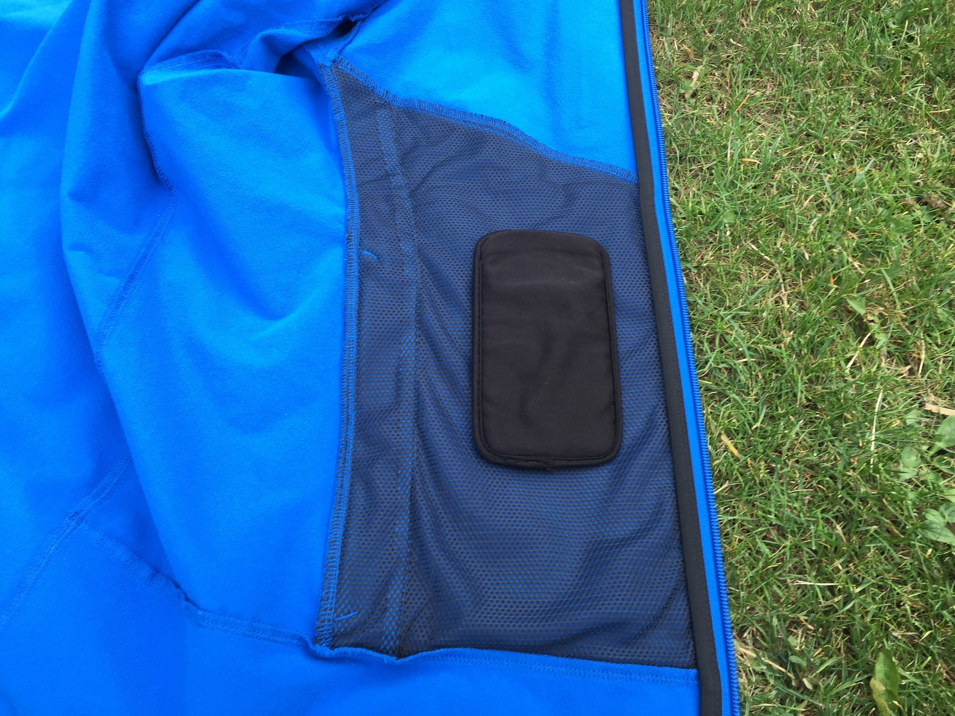 Bunda je vybavena třemi kapsami. Jedna z nich je na hrudníku (velikost cca 15 x 9 cm), tuto kapsu moc rád využívám na mobilní telefon, iPhone 6 se tam ale bohužel nevejde. Dvě boční síťované kapsy (velikost cca 28 x 17 cm) jsou dostatečně velké na uložení dalších drobností. Kapsy se dají se používat i jako větrací otvory.