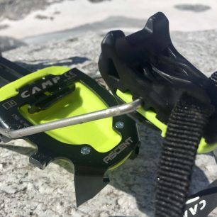 Camp mačky Ascent vybavil možností upínání na většinu horolezeckých bot. Ihned po vybalení je nasadíte v automatickém režimu, v balení je i přední univerzální upínání. Pokud byste chtěli univerzální upínání i vzadu, je třeba ho dokoupit zvlášť (CAMP Ascent Universal Heel Bail). Zajímavou možností pro ultralight horolezecky je možnost koupě lehkého dyneemového pásku, který nahrazuje ocelový středový můstek (CAMP Dyneema linking strap).