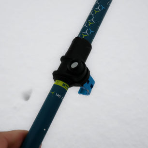 Poutko je akorát široké a okolo zápěstí se rozšiřuje. Popruh je vyztužený ještě extra materiálem (neopren). Celkově hodnotím poutko velmi pozitivně, a to i přesto, že jej jako horský vůdce používám minimálně. Nastavení délky se děje zatažením popruhů směrem vzhůru. Tímto pohybem dojde k uvolnění sevření a za volný konec popruhu lze lehce nastavit potřebnou délku. Až v popisu produktu jsem si všiml, že u holí CAMP Ski Track je rozlišeno L a R poutko. Osobně jsem to neřešil a poutka mi seděla i při přehození. Označení na poutkách je velmi drobné a přehlédnul jsem jej.