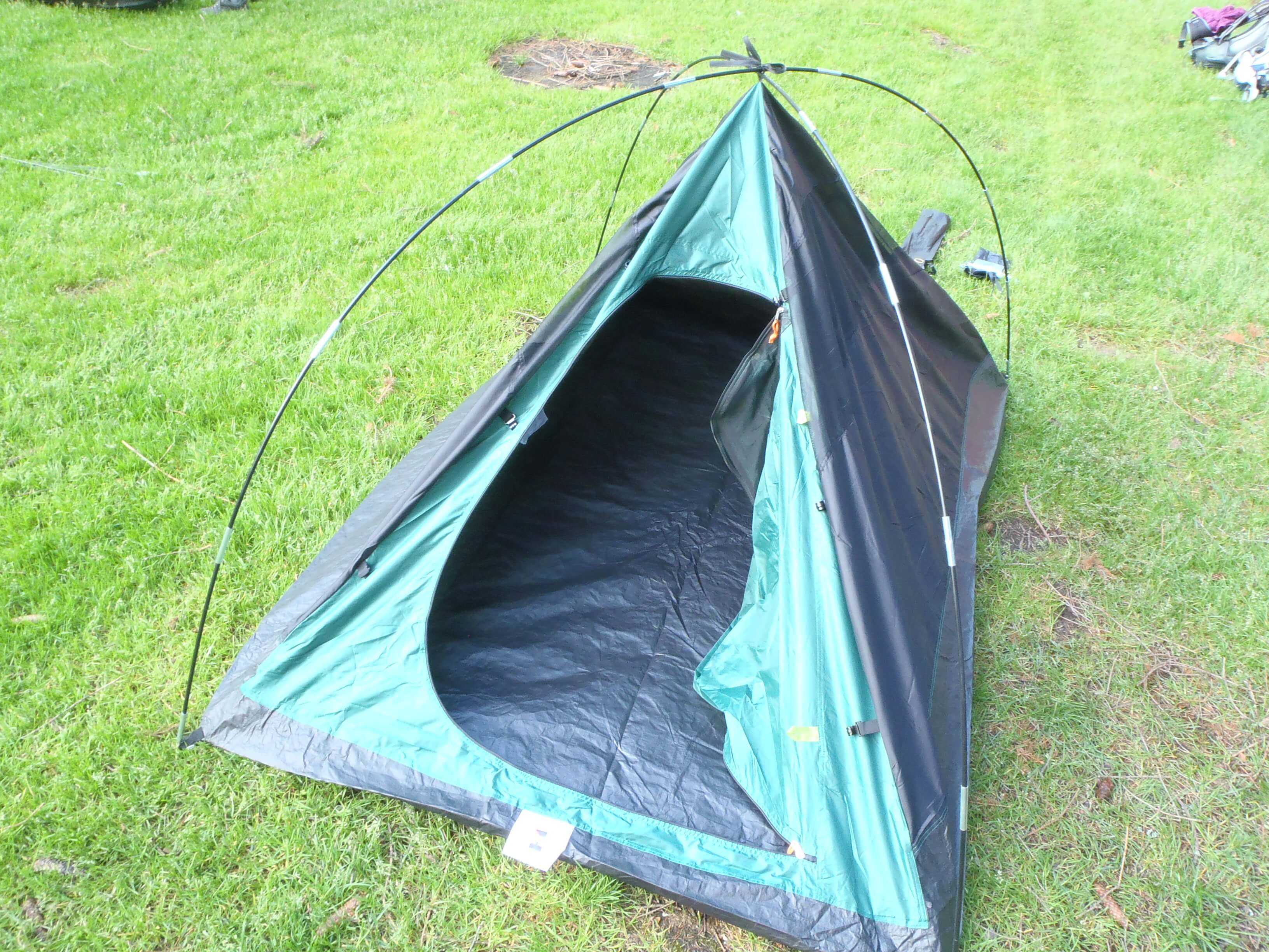 Stavba stanu je jednoduchá, jelikož se jedná o kopulovitou konstrukci se zkříženými laminátovými pruty. Po rozložení vnitřního stanu podlážkou dolů stačí nasadit konce prutů do rohu, ve kterých je kotvící kroužek a trn. Ten pasuje do konců prutů. Zkřížené pruty pak stačí ve vrchlíku zajistit tkanicemi. Osobně bych uvítal nějaký sofistikovanější způsob, ale v jednoduchosti je asi síla. A po obvodu na několika místech zavěsit vnitřní stan na konstrukci pomocí několika plastových háčků. Po zavěšení vnitřního stanu a zakolíkování se přes konstrukci přehodí vnější stan neboli tropiko. To je možno na 4 místech zajistit k prutům suchým zipem. A v rozích opět zakolíkovat. Posledním úkonem je napnutí malé předsíňky před vchodem a případně i vypnutí 4 šňůr. Kolíky pro jejich kotvení jsou ocelové.