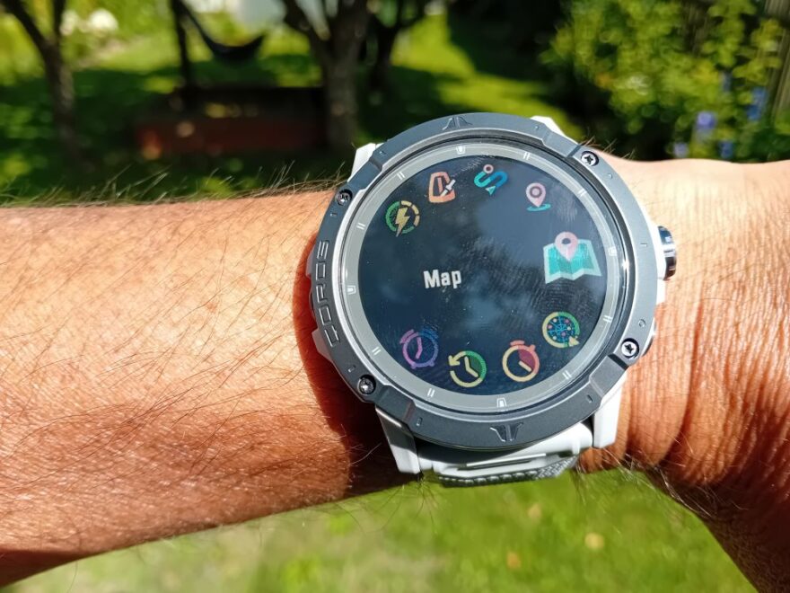 Originální přístup značky COROS je znatelný i v práci s mapou. Uživatelsky přívětivá je možnost nastavení ovládání dotykem pouze mapu. Přibližování a oddalování mapového podkladu ovládáte korunkou, viditelnou část mapy posouváte dotykem. V zobrazení můžete volit mezi horizontální orientací se zobrazením silnic a cest (Landscape), topografickou mapou s vrstevnicemi a vrcholy (Topo) nebo verzi Hybrid s přednostmi obou předchozích. Za nevýhodu považujeme při praktickém využití absenci popisků u map. Zejména v neznámém prostředí mohou výrazně usnadnit orientaci. Částečně limitující je také lehce pomalejší odezva při posouvání mapy, což zejména při rychlejším tempu běhu není úplně příjemné.