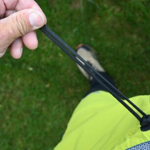 Kolena a vnitřní strany kotníků jsou z odolného materiálu pro větší výdrž. Stejný materiál je použitý i pase pro větší odolnost při nošení batohu. Díky elastickému materiálu jdou lehce přetáhnout přes pohorky nebo i vyhrnout pod kolena. Nohavice jsou zakončené stahováním se cvočky na 3 stupně stažení. Cvočky jsou kovové a zcela ploché.