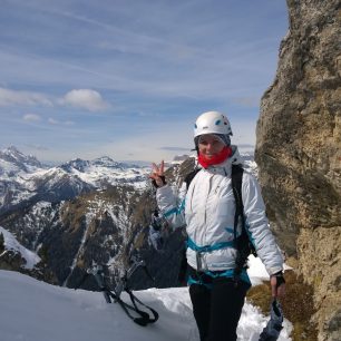 Sedák se mnou absolvoval i výstup na vrchol Monte Cernera u italského Bolzana v Dolomitech…jak mi všichni záviděli, že mi nezabere skoro žádné místo v batohu!