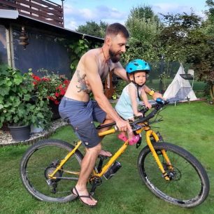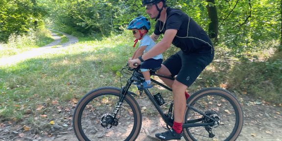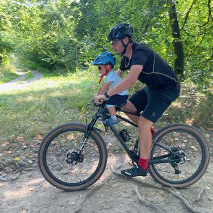 Aby ale testování mělo vypovídající hodnotu, půjčil jsem Shotgun Pro kamarádovi Milanovi, který má kluka ve věku 2,5 let. Na užívání Shotgun Pro napsal následující: „Sedačka je super, jde připevnit na jakékoliv kolo a nepoškodí rám. Největší výhodu vidím v tom, že můžu šlapat bez omezení a vytáčení kolenou do stran. Na gravel biku šla znatelně znát změna těžiště, oproti tomu se mi daleko lépe jezdilo na celoodpruženém biku. Na změnu těžiště se ale dá zvyknout. Protože mám zkušenost s pěnovou sedačkou na horní rámovou trubku, tak mi u Shotgunu chyběla možnost připoutat dětské nohy ke stupátku, takže může hrozit, že dítěti nohy vypadnou nebo je vytáhne a dostanou se tam, kam nemají.“