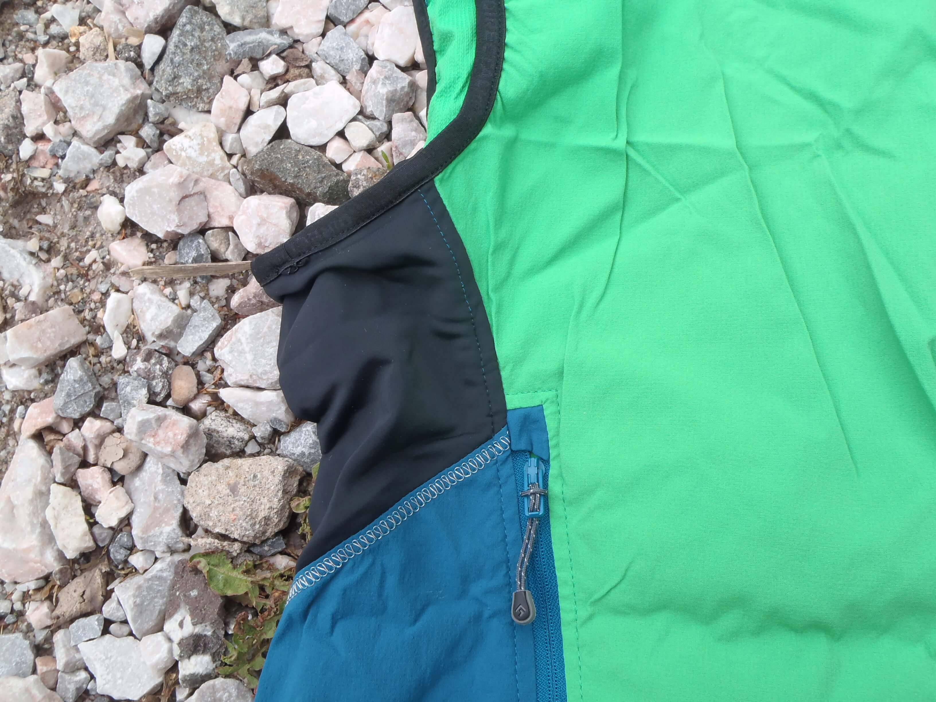 Hrudní kapsa pojme spíše menší chytrý telefon nebo kompaktní foťák. Můj mobilní telefon o rozměrech 16 x 8 cm se do kapsy vejde už s potížemi. Nutno do kapsy zastrčit odspodu nahoru. Taktéž je kapsa našitá dosti vysoko a dělala mi její pozice problémy při zapínání hrudního pásu u batohu. Doporučuji vyzkoušet. Do spodních taktéž zipových kapes můžete zavěsit ruce nebo uložit další drobnosti. Zapínají se odspodu. Táhla jezdu jsou dostatečně veliká a možno ovládat zipy i v rukavicích.