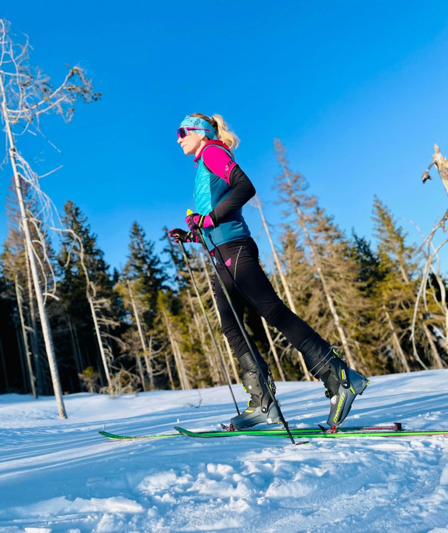 Jakmile si ale botu upravíte tak, aby seděla, tak Vás Mezzalama rozhodně baví. Zvlášť když ji porovnáte s jejím předchůdcem PDG. Starý závodní model Dynafit PDG měl pouze vnější přezky a ty neposkytovaly tak individualizované a přesné stáhnutí nohy v botě. Mně osobně nejvíce vyhovuje, že si rychle a jednoduše mohu upravit míru stažení celé spodní části botičky během túry. Twist fit systém mi umožňuje hrát si s detaily oproti jedné přezce na PDG, kde jsem nikdy nedosáhla úplného a přesného stažení. Člověk neměl skoro žádnou podporu a zvláště pak při jízdě z kopce noha v botě pěkně “člochtala”. S Mezzalamou je to teď úplně jiná. Z kopce, ať už na sjezdovce nebo v terénu, bota hbitě přenáší sílu na lyže, které díky tomu máte plně pod kontrolou.