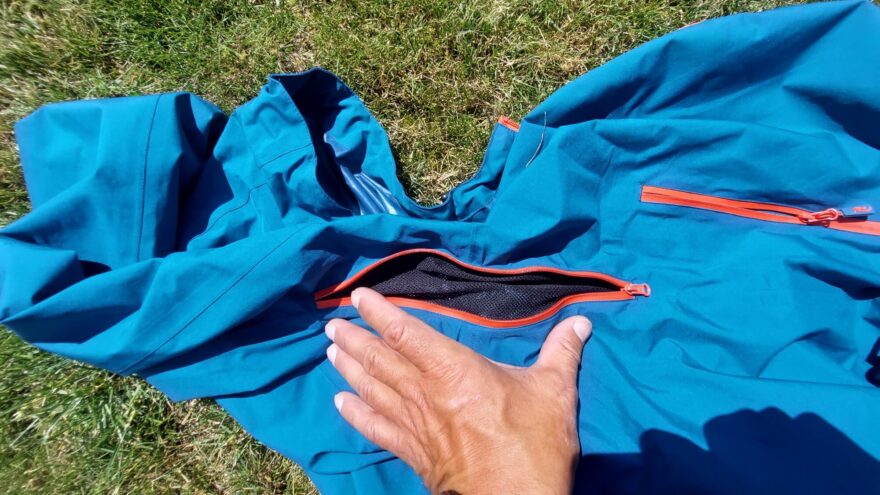 Rukávy jsou tak akorát pro účely, ke kterým je bunda určena. Pro lezení bych uvítal o něco delší. V podpaží je bunda opatřena dvojicí ventilačních otvorů na zip. Délka je něco malinko přes 20 cm a vstup je krytý síťkou. Stahování konců rukávů je pomocí suchého zipu.