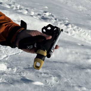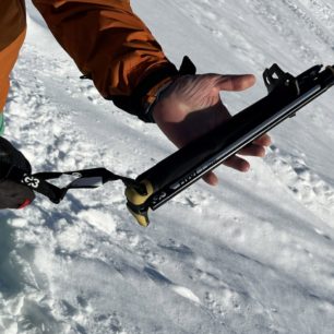 Dvou a třídílných skialpinistických holí je na trhu velké množství. Jejich hlavní nevýhodou pro použití třeba na splitboardu je to, že výrobci nepočítají s tím, že skládací hole by se měly vejít do batohu. Proč? Aby bylo možné je při sjezdu úplně schovat a nemohlo dojít k zachycení za strom, větev nebo o zranění při pádu. Při nástupu v pásmu lesa také může dojít k tomu, že se vícedílné hole někde zachytí. U G3 PIVOT nic takového nehrozí, protože z hole od košíčku po rukojeť částečně vyčnívá pouze jeden zámek pro délkové nastavení v rozmezí 115-135 cm (při testované L verzi).