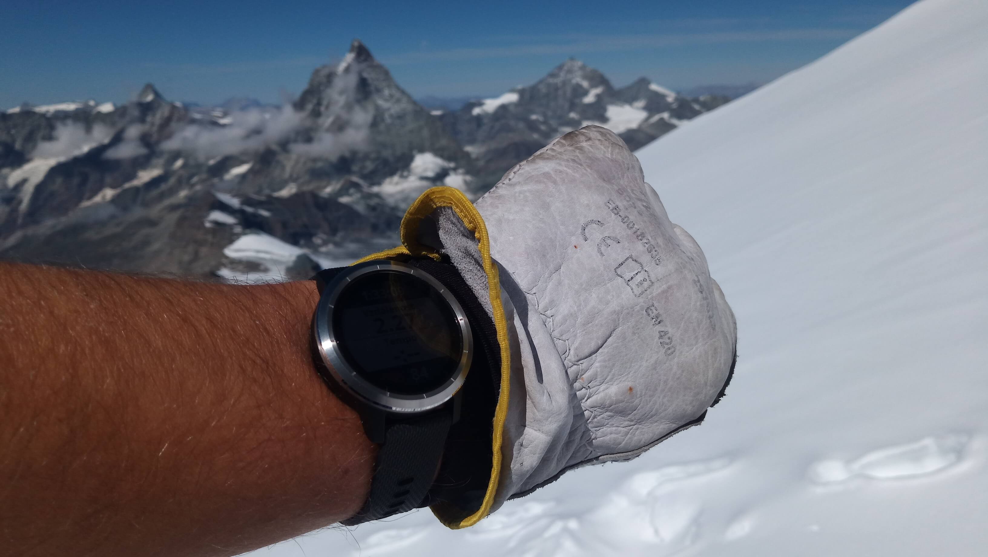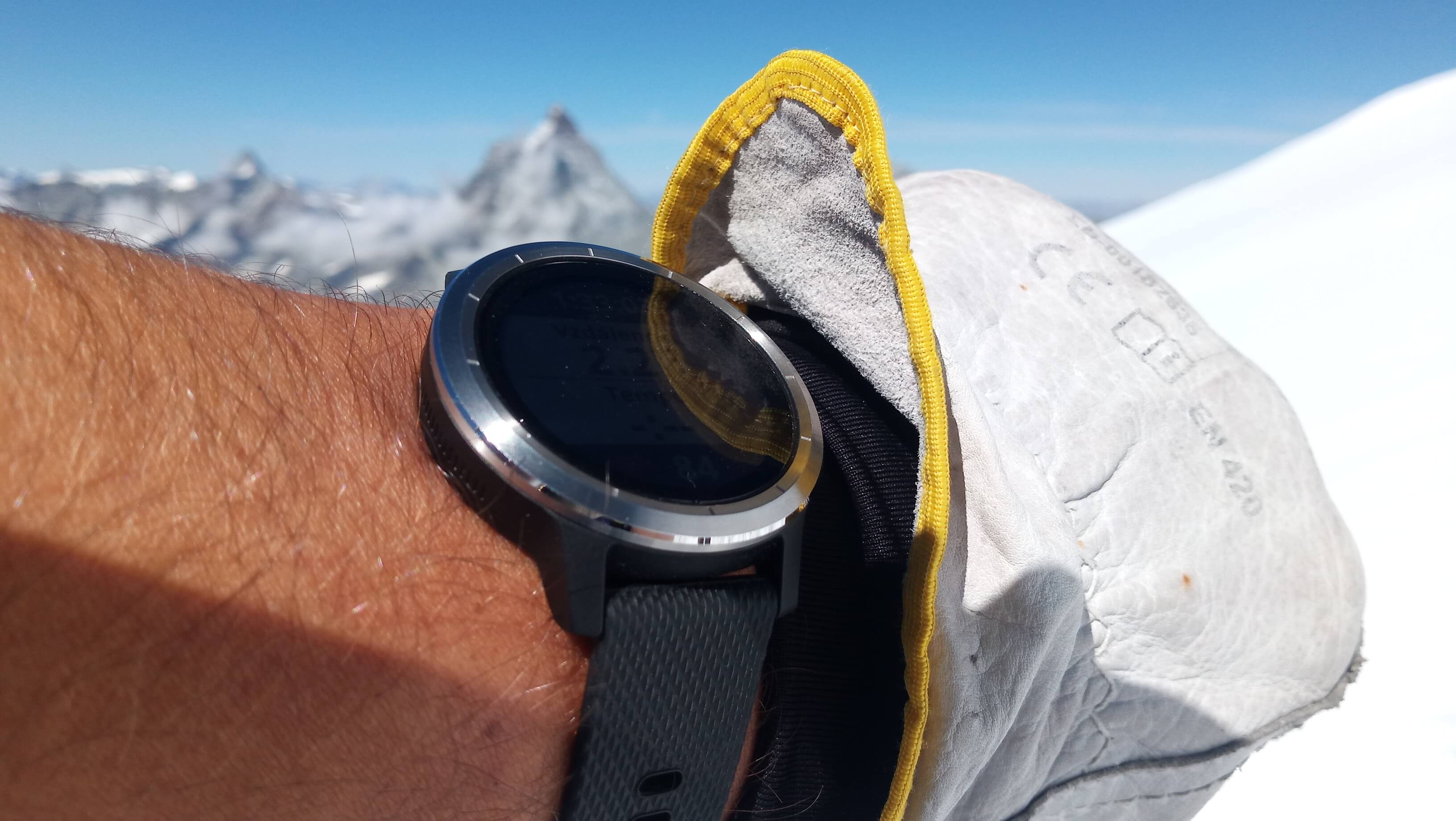 Hodinky Garmin vívoactive 3 s Matterhornem v pozadí.
