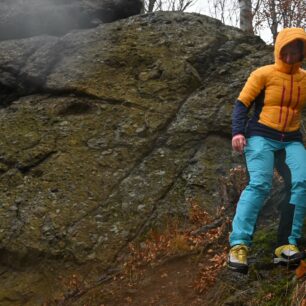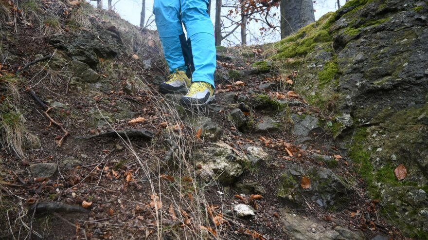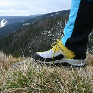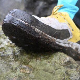 Samotná podešev se skládá ze dvou částí – mezipodešev EVA a podešev. Mezipodešev má stejně jako vnitřní stélka dvě hustoty. Díky tomu boty jsou flexibilní a stabilní i v náročném terénu. Samotná podešev je tvořená ze dvou komponentů – v oblasti špičky se nachází „lezecká“ zóna, která poskytuje skvělé tření. To jsem využila během lehčího lezení a na via ferratách. Druhým komponentem podrážky je ostrý dezén, který skvěle slouží v měkkém terénu. To se mi osvědčilo při nástupech za sněhem v Krkonoších a na výletech okolo chalupy v Adršpachu.