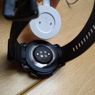 Co se týče stavby hodinek, ciferník je oproti většině smartwatchů poměrně velký a robustní. Pokud jej ale srovnáme s klasickými gps sportovními hodinkami, bude se řadit spíše do menšího průměru (oproti ambitům je to opravdu hubený kousek) Zespodu ciferníku najdeme snímač srdečního tepu ze zápěstí, ten sice lehce vystupuje, ale ne ruce jej není vůbec cítit. Řemínek je tvořen z pevné, na první pohled odolné pryže. Co musím vyzdvihnout, je lehká flexe této gumy. Hodinky se dají zapnout tak, že drží pevně na ruce ani při turistice běhu nebo na kole neskáčou (jako v případě moc pružného řemínku), zároveň ale nikde neškrtí (jako u příliš pevného řemínku).