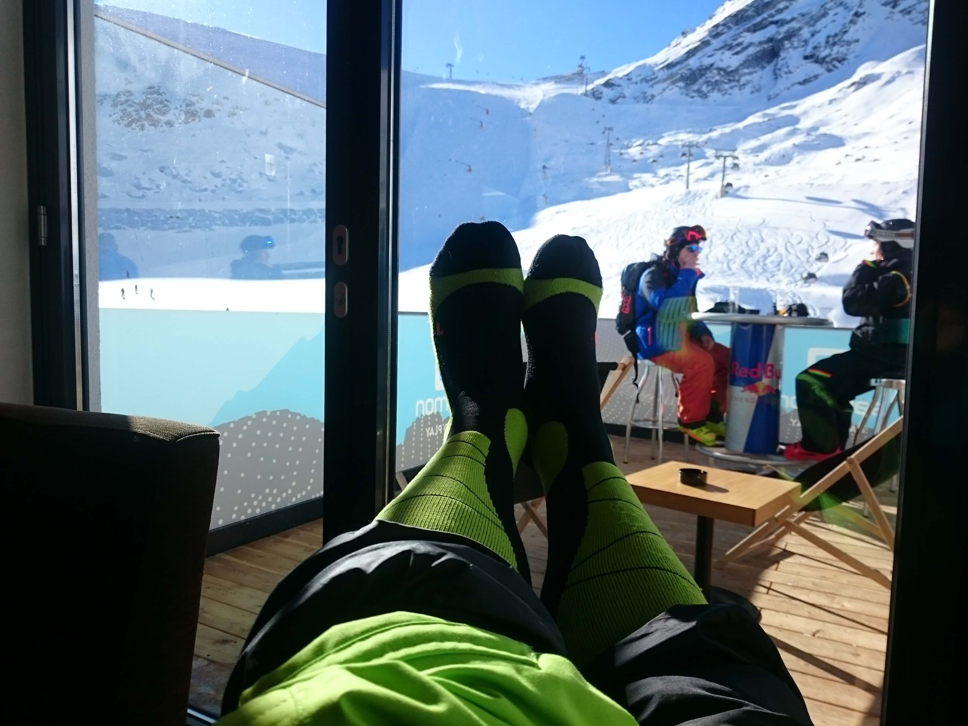 Komprese je příjemná a nijak o ní nevíte. Respektive nejvíce jsem si ji uvědomoval ve chvílích klidu. Tedy na lanovce, při přestávkách nebo po lyžování. Ať už na cestách nebo při Aprés ski. Zvládnul jsem 6 dní lyžovat v kuse ve freeridu ve švýcarském Davosu a subjektivně se mi zdálo, že jsem se cítil (lýtka a nohy) lépe než při stejně intenzivním lyžování bez ponožek s kompresí.