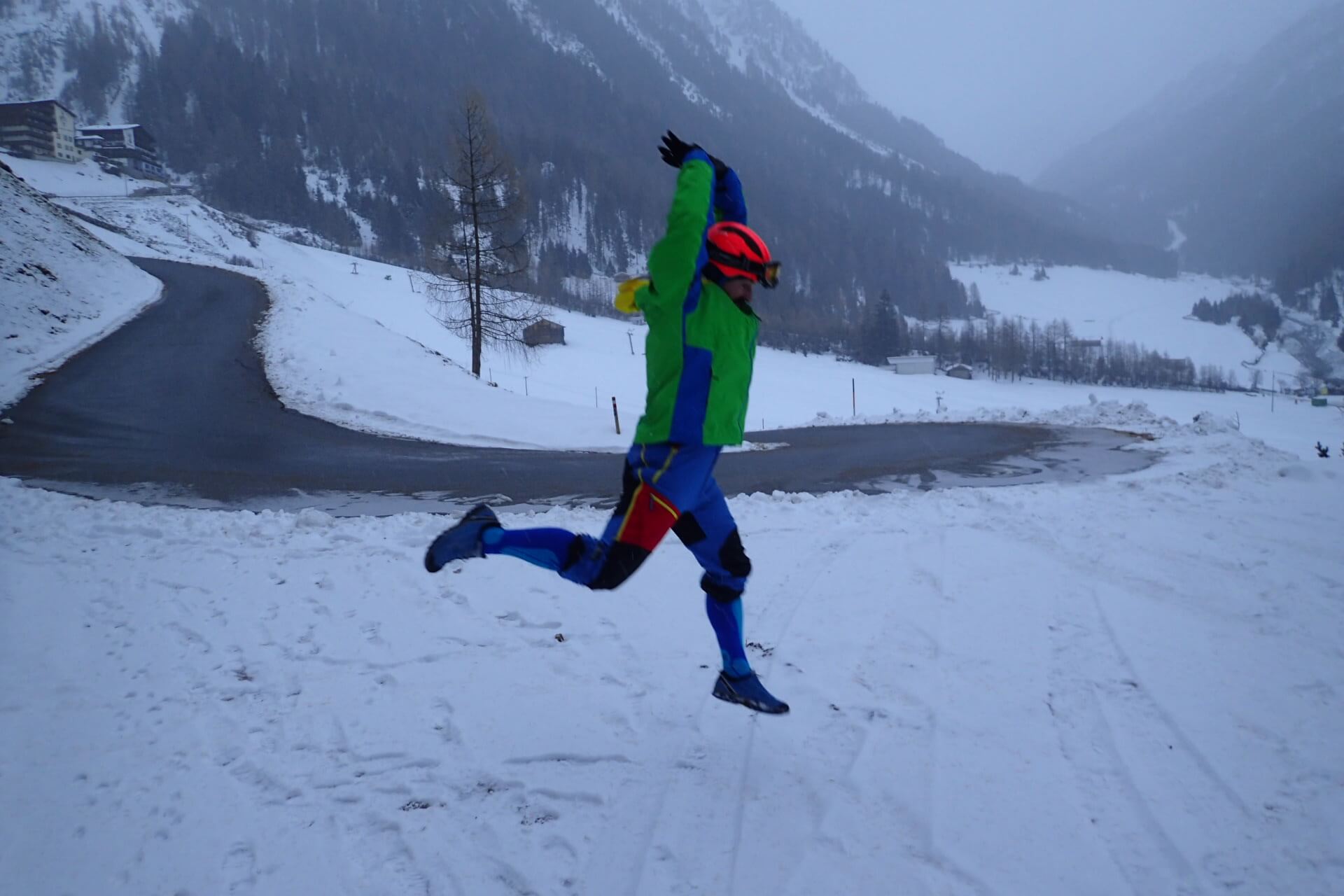 Testování ponožek CEP během lyžování ve volném terénu v Söldenu.