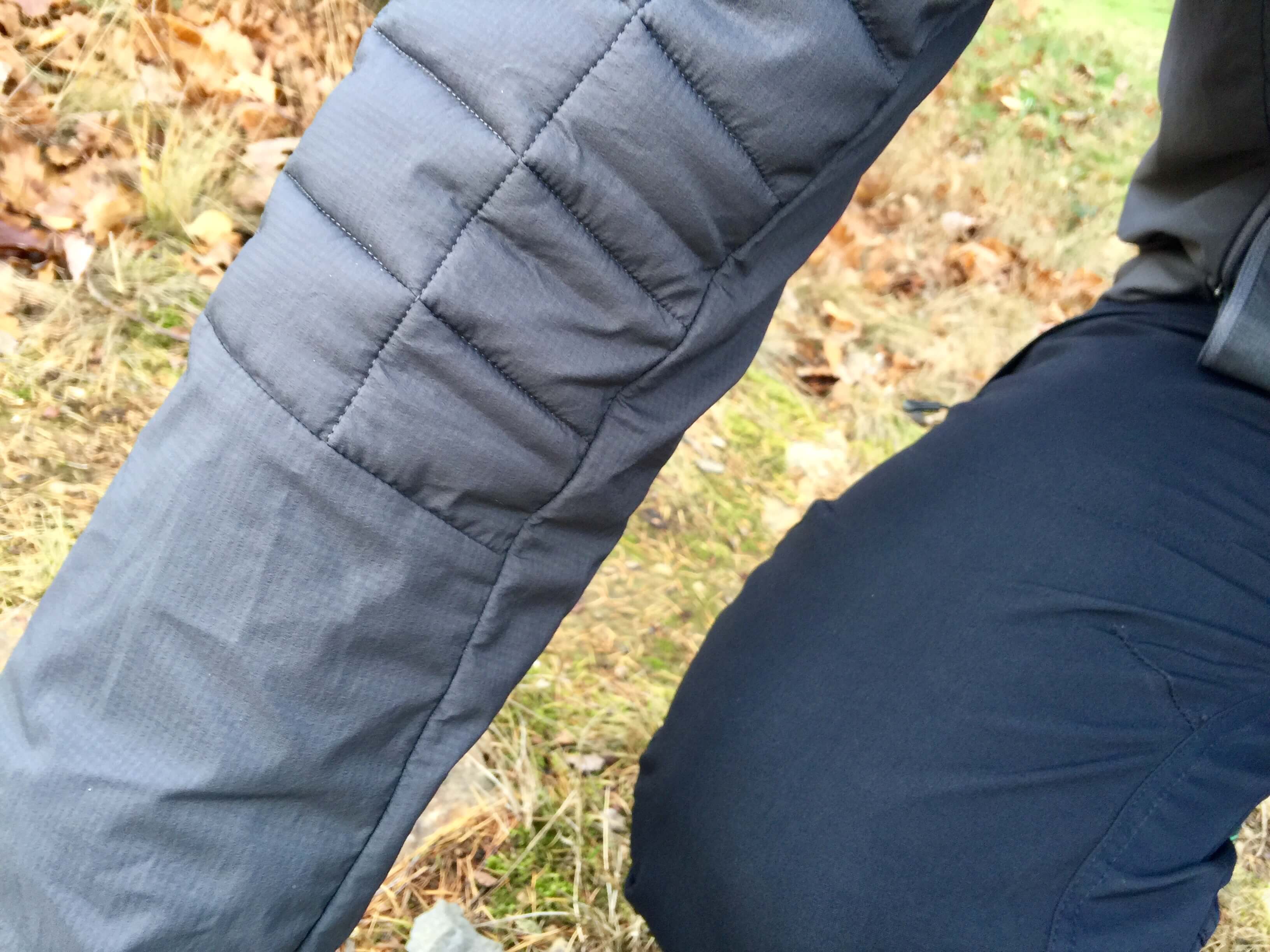 Detail zateplení loktů na bundě Marmot Featherless Hybrid.