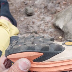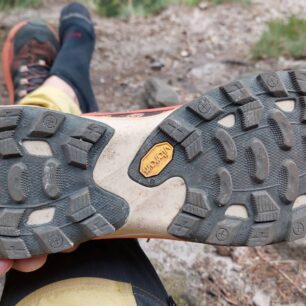 Podešev Vibram® TC5+ poskytuje vynikající přilnavost a trakci v různorodém terénu. Vzorek je parádně hrubý a designovaný tak, že zabírá jako drapáky na pneumatice do terénu. Pouze mě překvapilo, jak moc boty klouzaly na mokré dlažbě. V terénu však držely jako přibité!